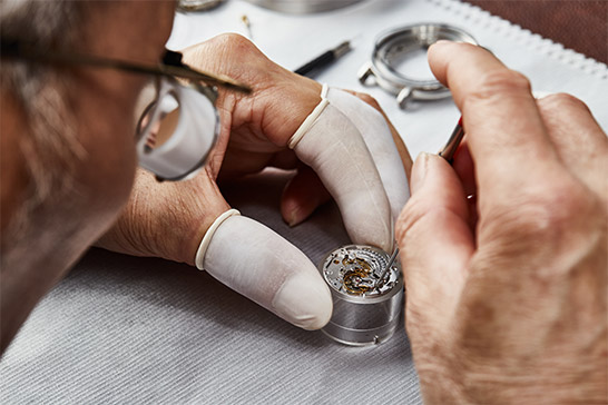 确认订单,技师拆解腕表、表壳 和机芯,取出指针和表盘。